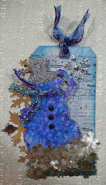 Using Alcohol Inks, I inked up the snowman. Here is a great video about Alcohol Inks.
